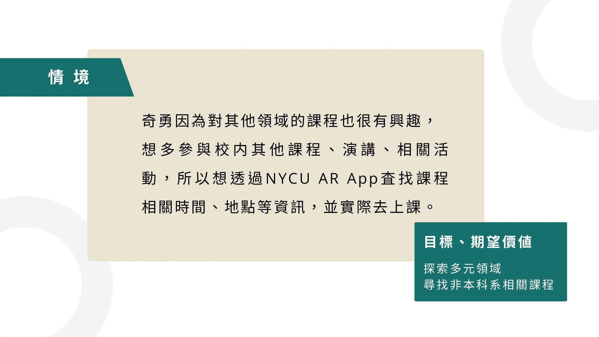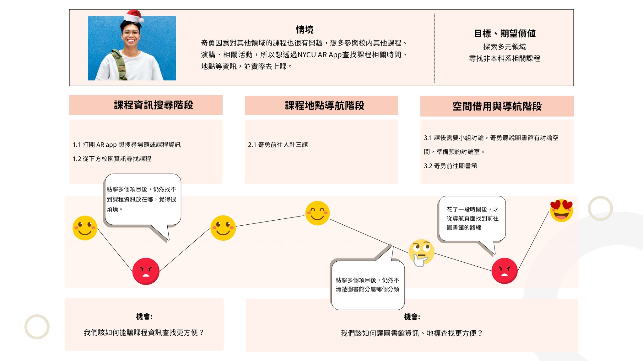 此專案針對 NYCU AR APP 進行使用者研究與介面優化設計。NYCU AR APP 旨在結合 AR 導航與校園資訊查找,提供豐富互動體驗。本研究針對目標用戶的實際使用情境,執行易用性測試、準則性評估,並運用 Figma 進行雛型改善,提升介面直覺性與使用效率。